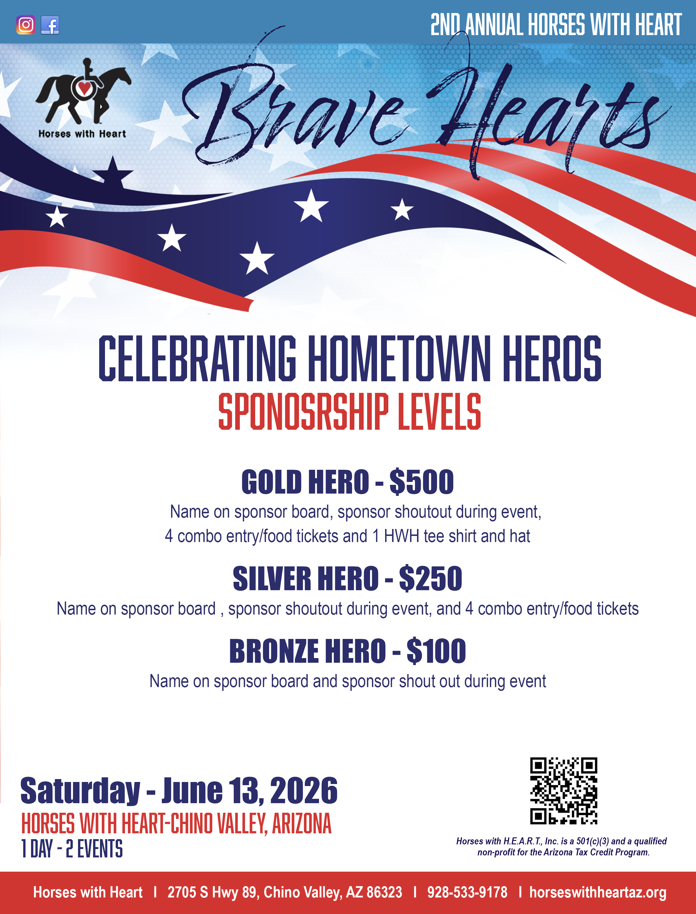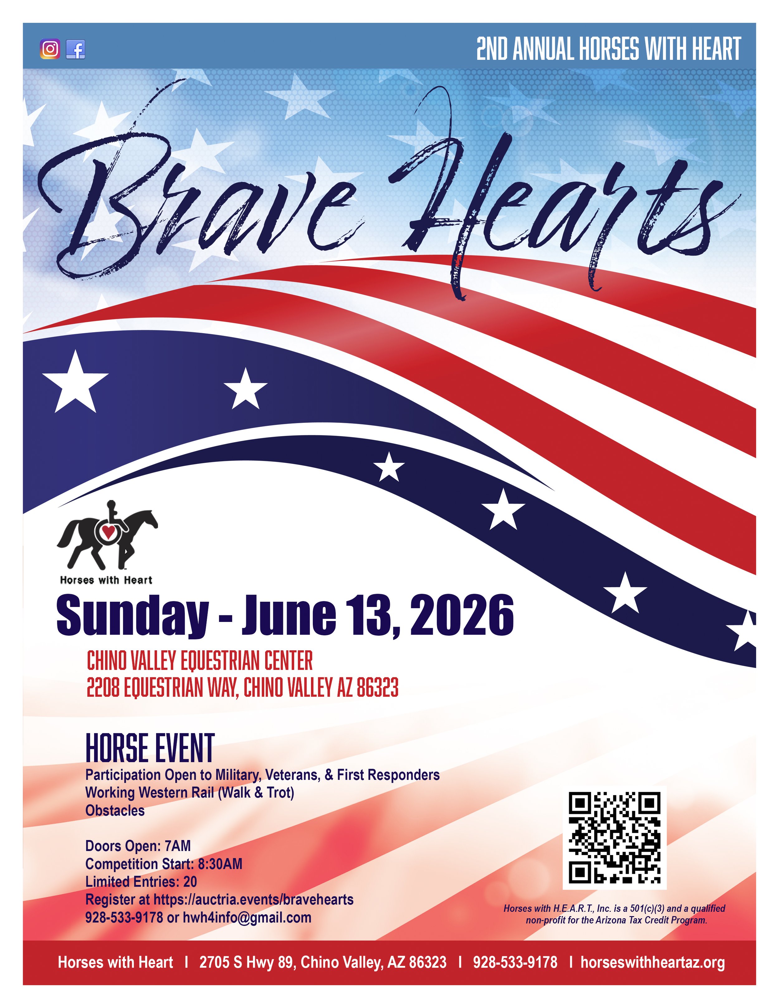 Horses with Heart is excited to announce the 2nd Brave Hearts Event which will be held on June 13th. Stay tuned for more. We hope that you will join us for this great event!