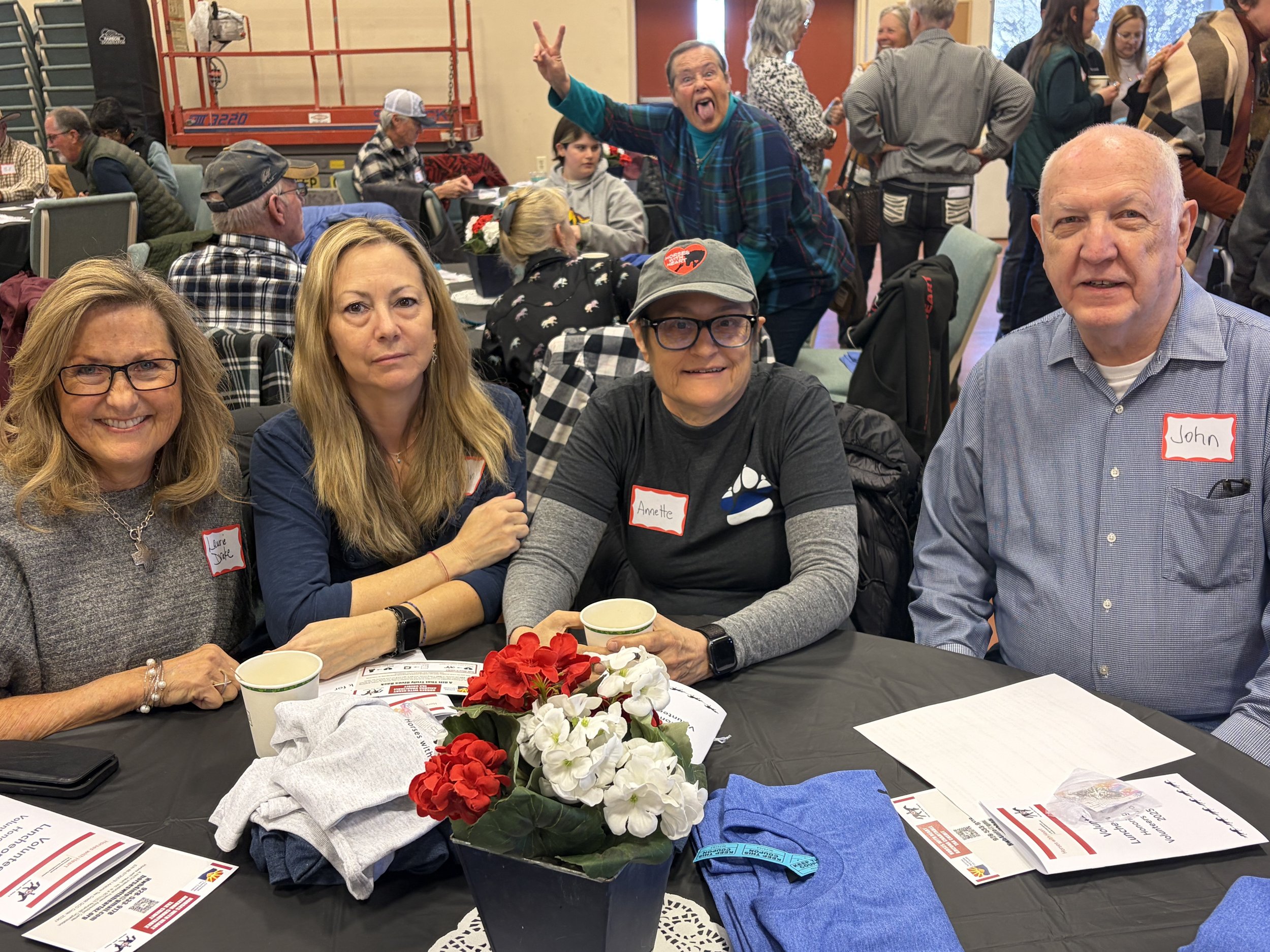 Our Volunteer Appreciation Luncheon was a fabulous success! With close to 100 attendees, we enjoyed a delicious Italian meal prepared by our very own Laura Smart and her sister Lisa. The luncheon started off by hearing from our board president, Robert Davis, as he shared a story about the value of volunteering. Our wonderful speaker was Laurie Walker, a volunteer and grandmother of a rider participant in our program, who shared an endearing story of her own experiences here at Horses with Heart. We continued with honoring many volunteers with milestone awards and then the luncheon concluded with our fun Wranglr Raffle. We are so grateful for all of our volunteers and look forward to another wonderful year.