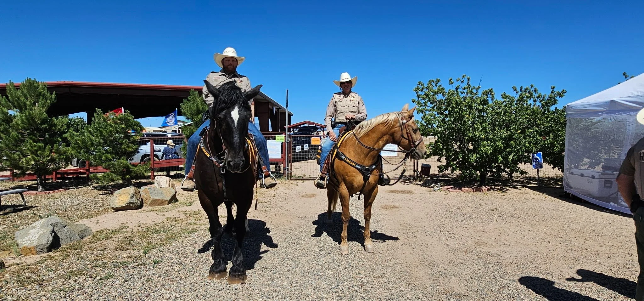 Arizona Rangers Biel and Kissell on horseback patrol at Brave Hearts Open House.