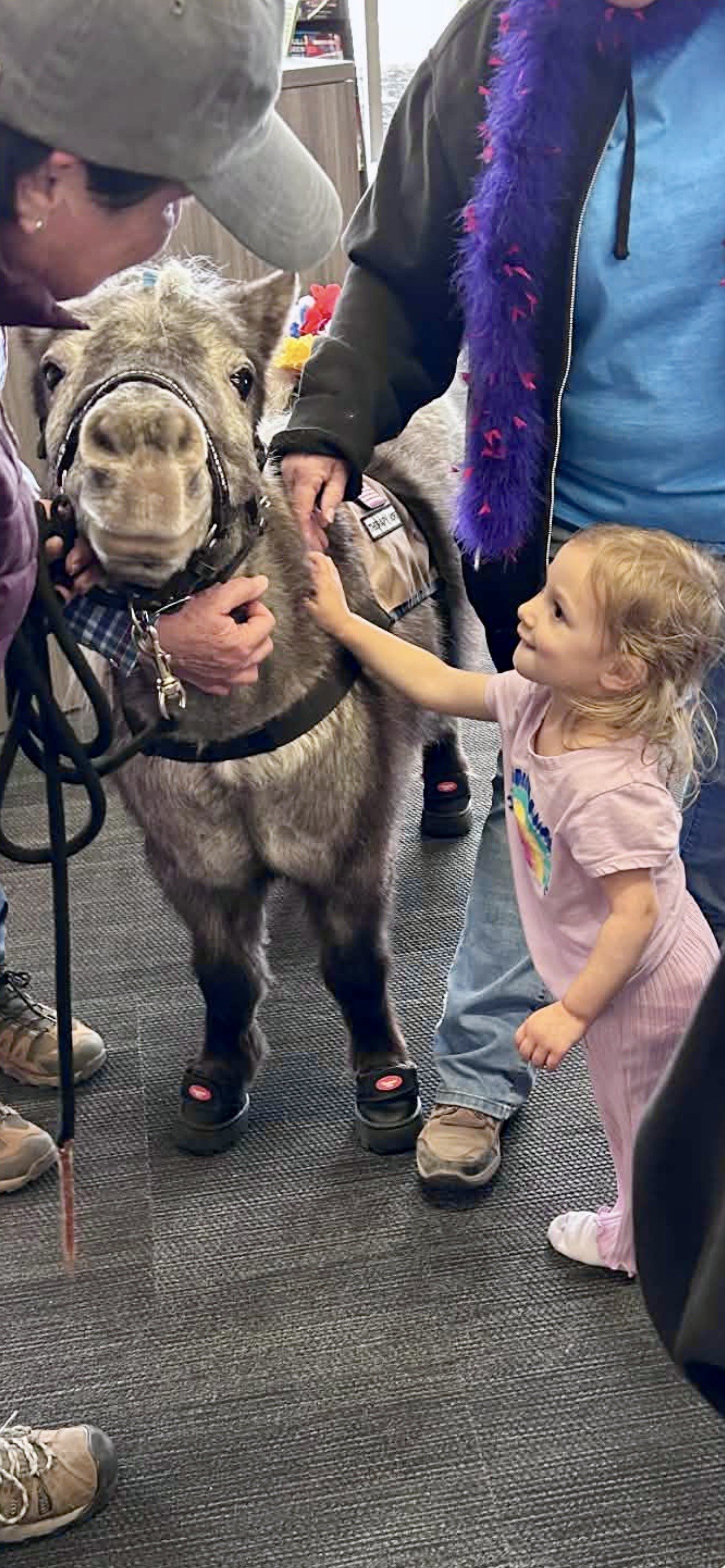 Rocky and Frosty lent their presence to a Valentine craft-making event inside the Teen Area at the Prescott Valley Library. When the teens started dispersing, we took the Minis into the main area of the library where they were the hit of the day! Kiddos were elated to see horses in the library!